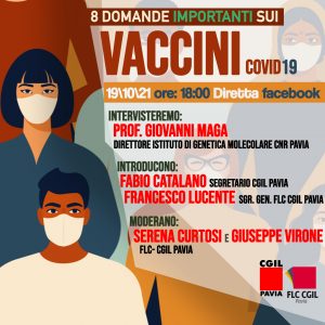 Martedì 19 Ottobre assieme alla FLC CGIL Pavia avremo il piacere di intervistare il Prof.Giovanni Maga ( Dir. Ist. Di Genetica molecolare CNR Pavia ) sul tema Vaccini.